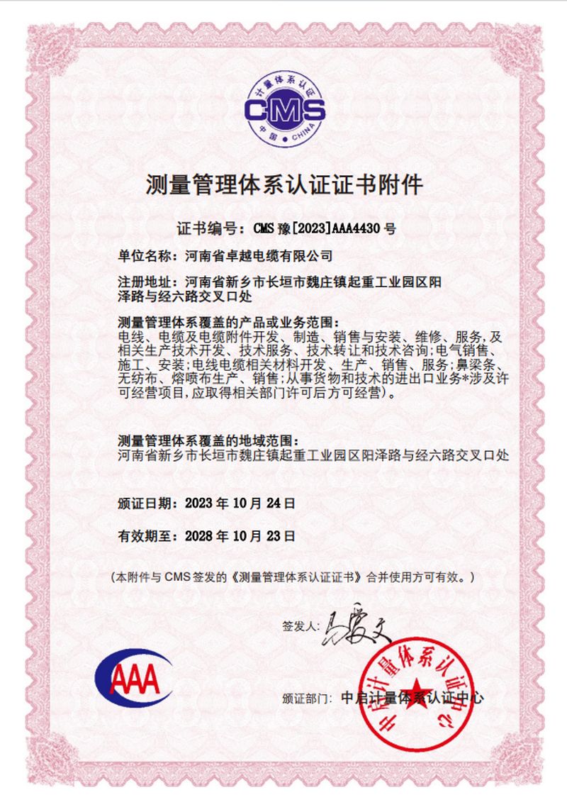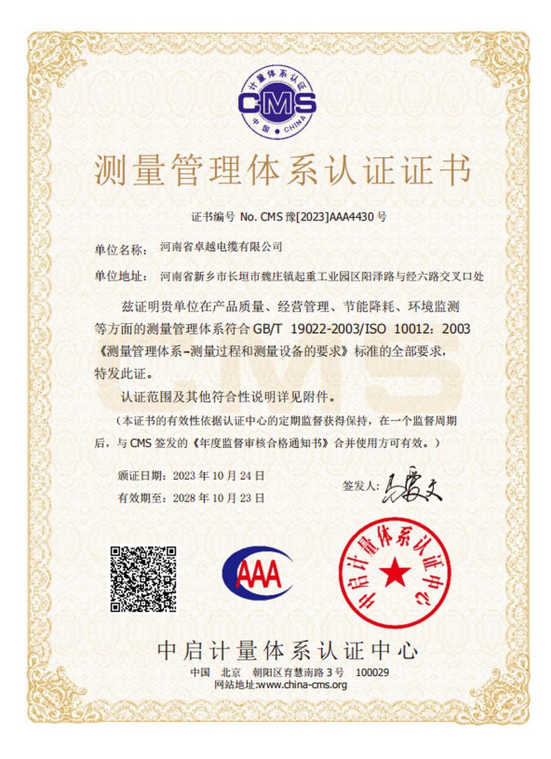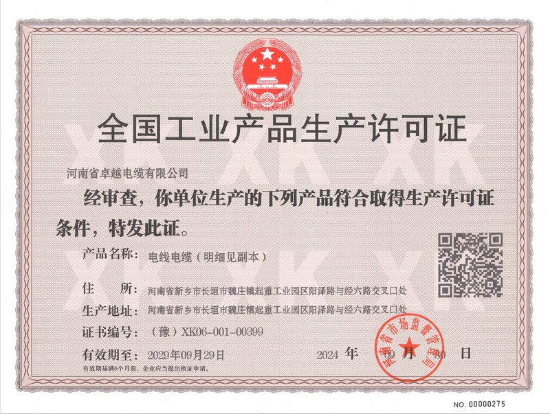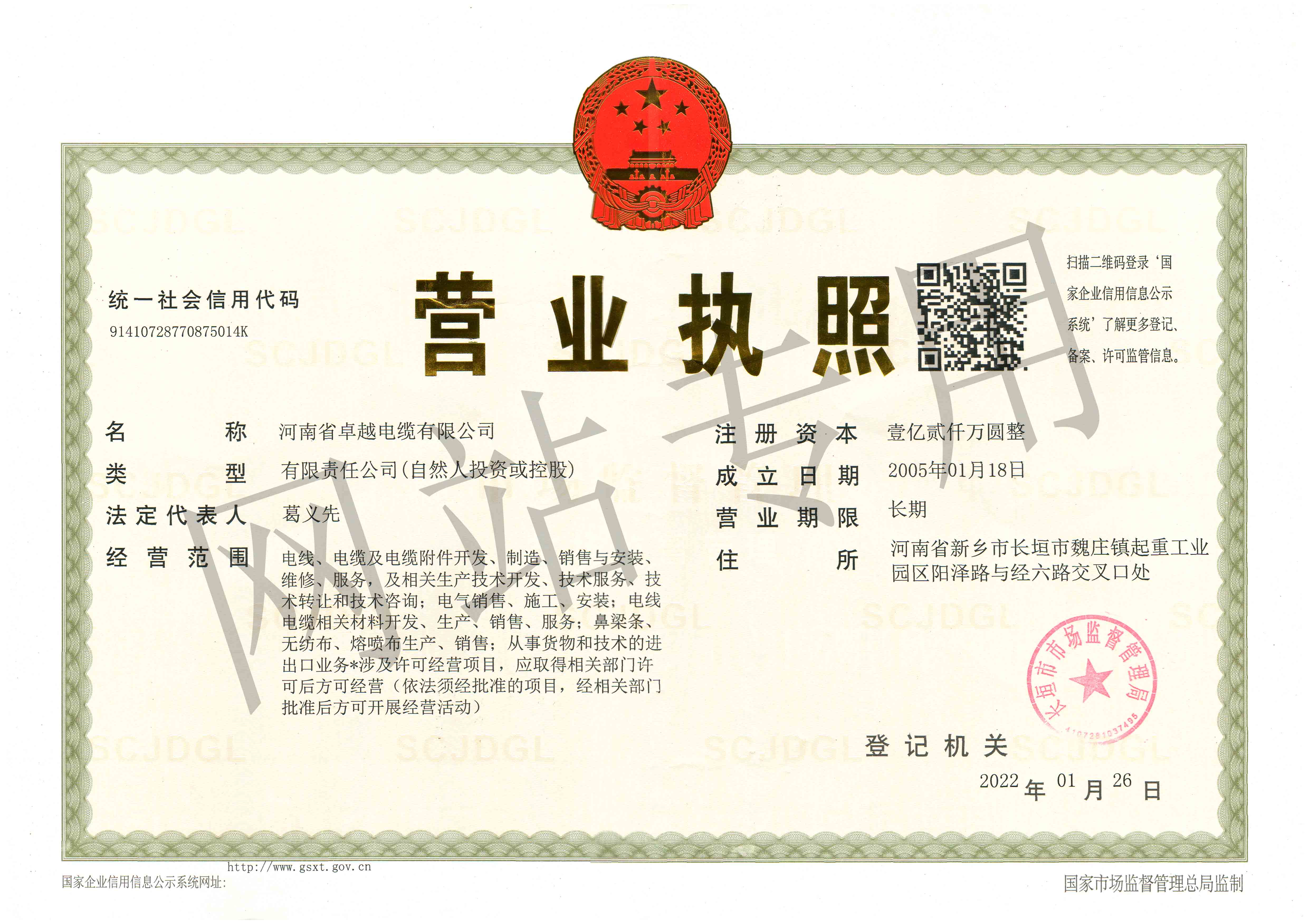 河南省卓越電纜有限公司是一家集生產、研發、銷售、服務為一體的河南省**技術企業,創建于2003年,位于長垣縣起重工業園區,占地面積:54000 m2;總資產12000多萬元,年產值5.2億元;主要產品有:各種型號規格的起重機扁平軟電纜、橡套軟電纜、耐高低溫電纜、聚氯乙絕緣電線電纜、控制電纜、電力電纜、船用電纜、礦用電纜、阻燃及耐火電纜、計算機電纜等;產品廣泛用于起重、鋼鐵、軍事、化工、煤礦、建筑、特種裝備等行業及領域。通過CCC認證、生產許可證、GB/T45001-2020/ISO45001:2018三體系認證等;中國質量萬里行理事單位。并被授予河南省電工行業誠信口碑單位、河南省科技型中小型企業等榮譽稱號,入選“2017年度河南省“專精特新”中小型庫。