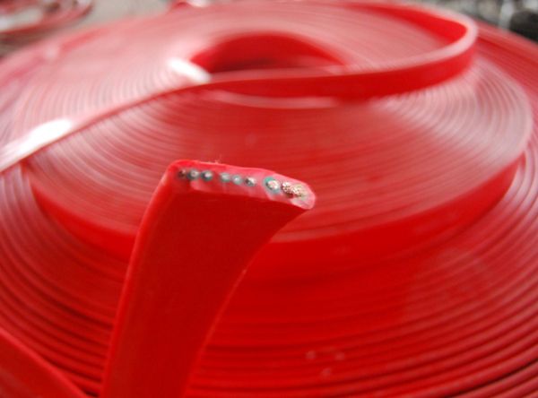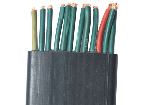 一、產品特點及用途 本產品具有耐寒、柔軟、耐磨、防油等特性,適用于交流額定電壓0.6KV/及下具有耐寒、防油等特殊要求的行車、臺車、傳輸機械等移動電器用動力傳輸線及控制、照明、通訊線路,本產品已廣泛用于冶金、電力、船舶、港口等行業。 分相屏蔽丁腈扁平電纜適用于作變頻器供電電纜。 二、使用特性 1.交流額定電壓:L。/U 0.6/1 KV *高工作溫度:105℃ *低環境溫度:固定敷設-40℃ 2.電纜安裝敷設溫度應不低于-25℃ 三、基本型號及名稱 表1 四、代號名稱含義 表2 備注:阻燃型扁平電纜型號前加ZR,導體線芯中銅絲中可以采用鍍錫 五、主要技術指標 1.成品電纜導體(R類)直流電阻《符合GB3956規定》 參照附錄A表1和表2。 2. 20C時絕緣電丨阻不小于50C5/KM 3.成品電纜經受交流50HZ3.5KV/min電壓試驗不擊穿 六、基本電纜規格及結構參數 注:YVFBP分相屏蔽電纜導體結構及*大外徑參照上表數據 七、產品結構示意圖
